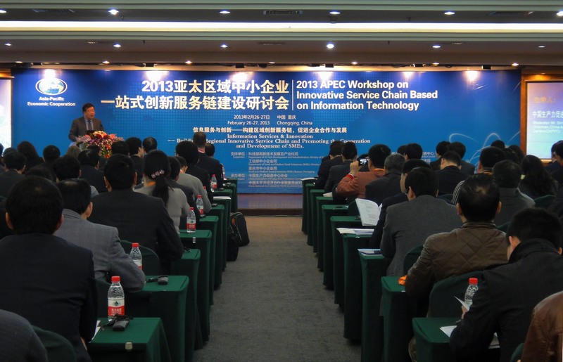 “2013亚太区域中小企业一站式创新服务链建设研讨会”于2月25日至27日在重庆市隆重举行。此次研讨会由科技部国际合作司、科技部火炬中心、重庆市科委和重庆市经济信息委共同主办,中国生产力促进中心协会、中国太平洋经济合作全国委员会对外经济技术合作委员会、重庆市生产力促进中心共同承办。科技部副部长曹健林、重庆市人民政府副市长吴刚出席开幕式并致辞,中国生产力促进中心协会理事长石定寰主持了开幕仪式。出席开幕式的还有智利、印度尼西亚等驻华商务官员、国际组织的代表、韩国信用保证基金、香港生产力局、台湾中国生产力中心、台湾工业研究院等12个APEC经济体代表,来自外交部、工信部、科技部相关司局领导、50多家各地区科技主管部门、生产力促进中心、高新区的相关负责人以及高校的学者及企业家等200余人参加了研讨会。