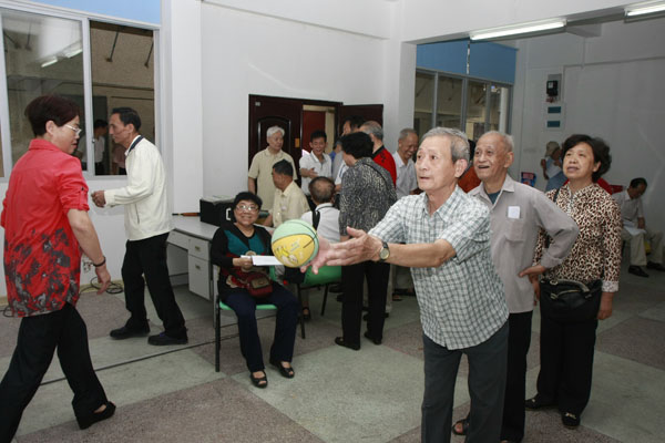 老同志参加投篮活动