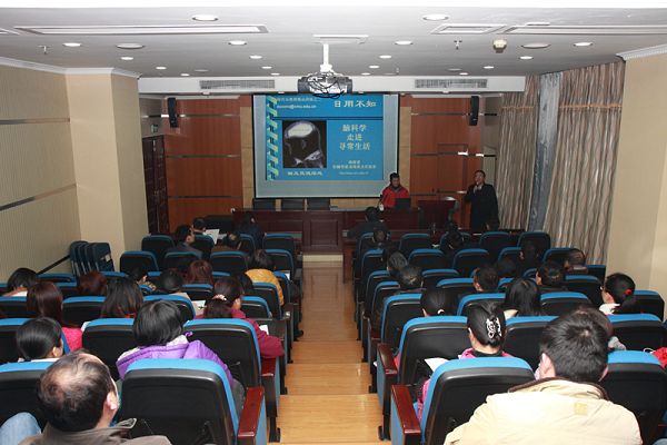 在题为《脑科学走进寻常生活》的专题讲座中,周昌乐教授用通俗的语言,深入浅出地介绍目前脑科学研究所取得的成就,并专门针对我们日常生活中的学习与生活问题,介绍如何健康、高效、充分地使用这一人生最重要的器官。周教授用风趣幽默的语言演绎了一场生动而又轻松的讲座,引起现场的阵阵笑声。