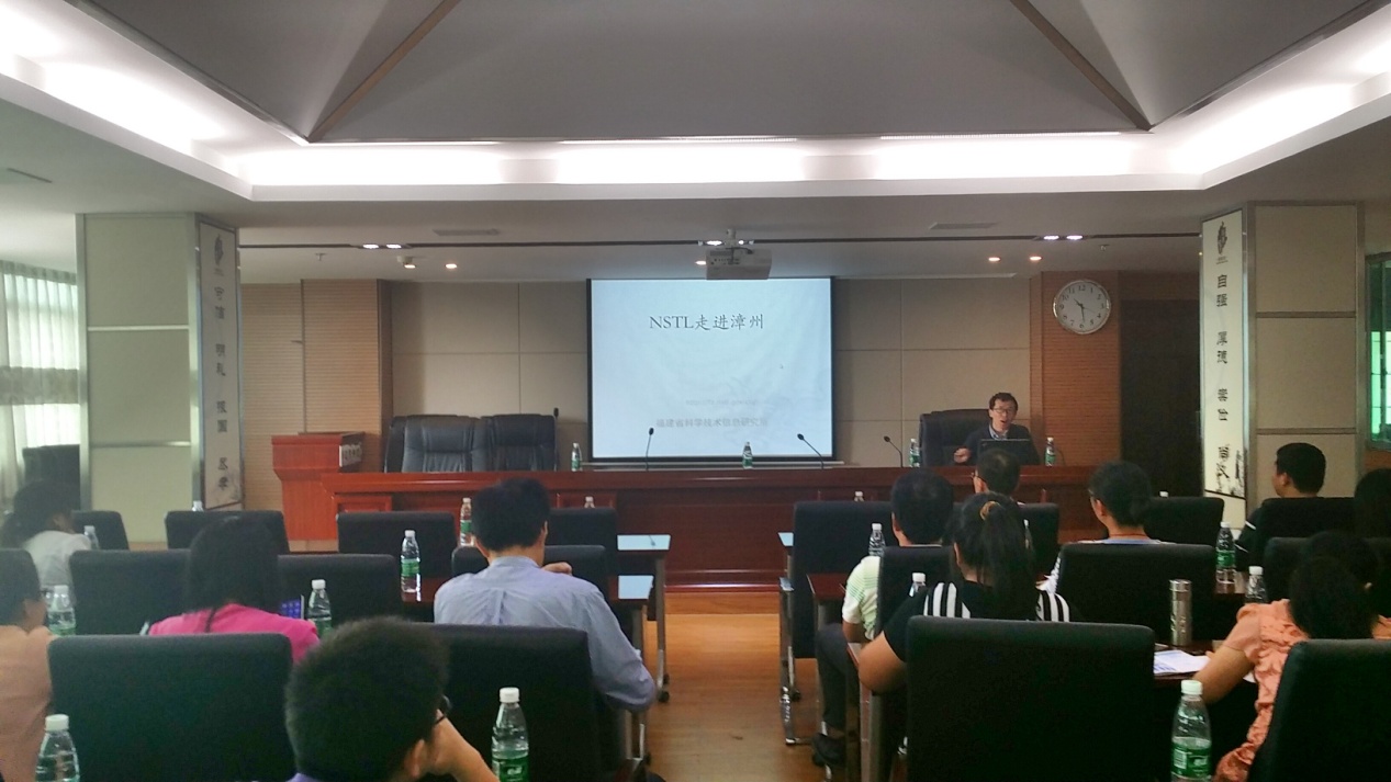 4月28日,文献资源室与漳州市科技情报研究所共同举办 “NSTL及省所科技文献资源应用推广”讲座,李金算副所长与文献资源室相关业务人员一行4人前往漳州,漳州各县(市、区)科技局和情报所人员及有关科研机构和企业人员共40余人参加培训。漳州市科技局副局长蔡亚河主持讲座,李金算副所长致辞。
