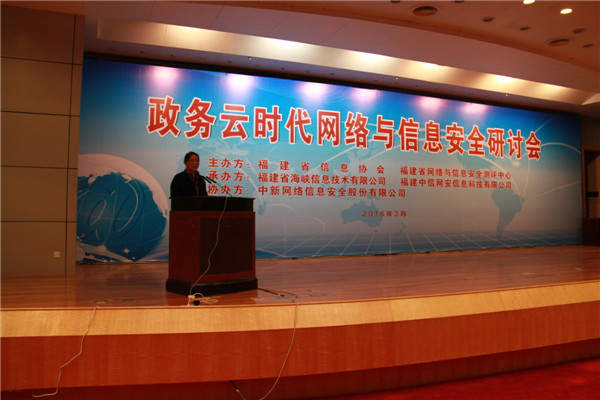 2016年3月31日,由福建省信息协会、福建省信息与网络安全测评中心、福建省海峡信息技术有限公司、福建中信网安科技有限公司联合举办的“政务云时代网络与信息安全研讨会”在福建会堂顺利召开。来自福建省省直政府部门、地市政府部门的200多位嘉宾齐聚一堂,共同探讨云计算环境下政府部门所面临的信息安全威胁挑战和应对措施。福建省公安厅网安总队王鸿开副总队长、福建省信息协会会长马亨冰会长、福建省网络与信息安全测评中心康仲生总工程师到会指导,海峡信息公司董事长高一真应邀出席会议,并为大会致开幕辞,预祝会议圆满成功。