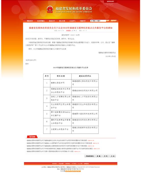 根据《福建省发展和改革委员会关于认定2016年福建省互联网经济重点公共服务平台的通知》(闽发改数字〔2016〕802号),省信息所所属海峡信息公司建设运营的“福建省海峡软件应用安全公共服务平台”成功入选2016年福建省互联网经济重点公共服务平台,成为省财政扶持建设项目中信息网络空间安全方向的唯一重点资质对象。