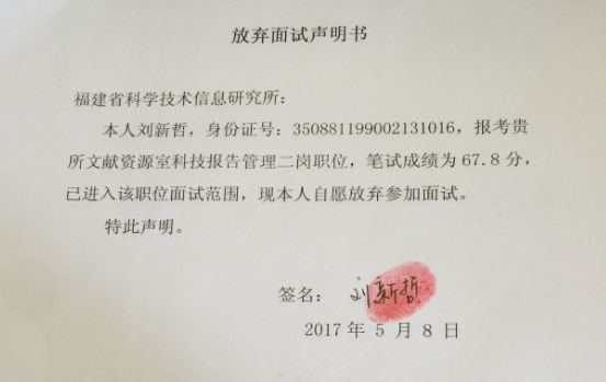 福建省科学技术信息研究所2017年招聘工作面试递补人员的通知(二)